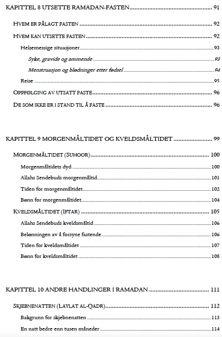 Boken gir en helhetlig forståelse av fasten, fra dens velsignelser, formål og regler til frivillige fastedager gjennom året. Den tar deg gjennom de ulike aspektene ved Ramadan, fra dens velsignelser og tilgivelse til Taraweeh-bønnen, skjebnenatten og veldedighet. Du får også en grundig gjennomgang av retrett og løfter. Med kilder fra kjente hadith-samlinger og fiqh-litteratur. Presentert på en enkel og lettfattelig måte – perfekt ressurs for både nye og erfarne lesere.