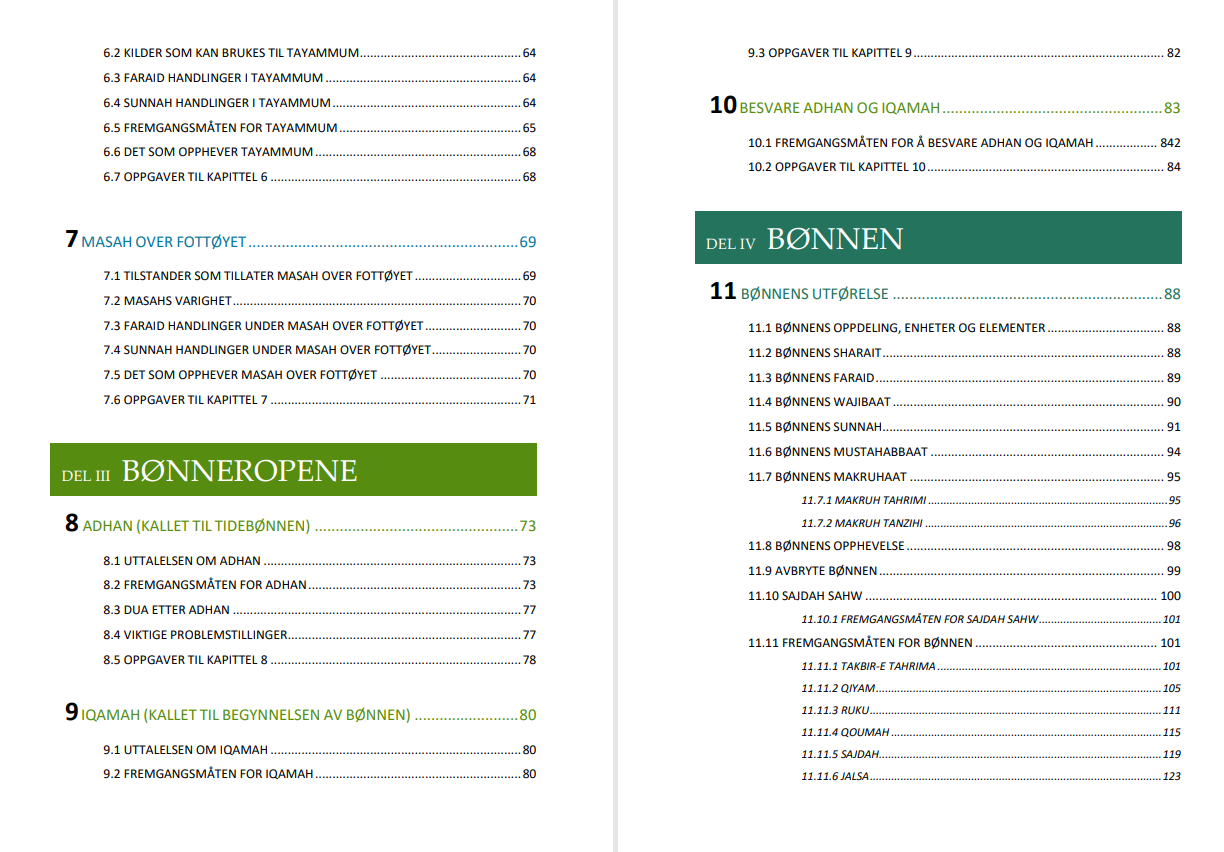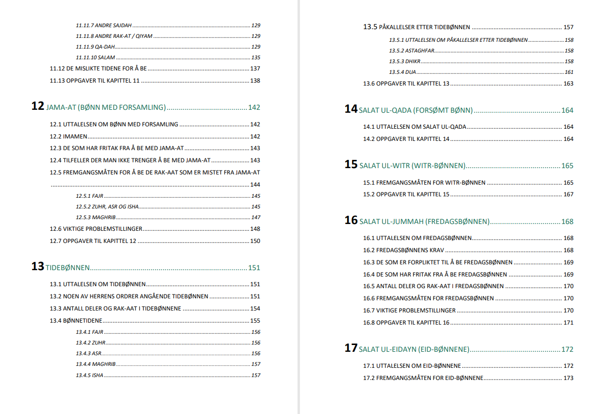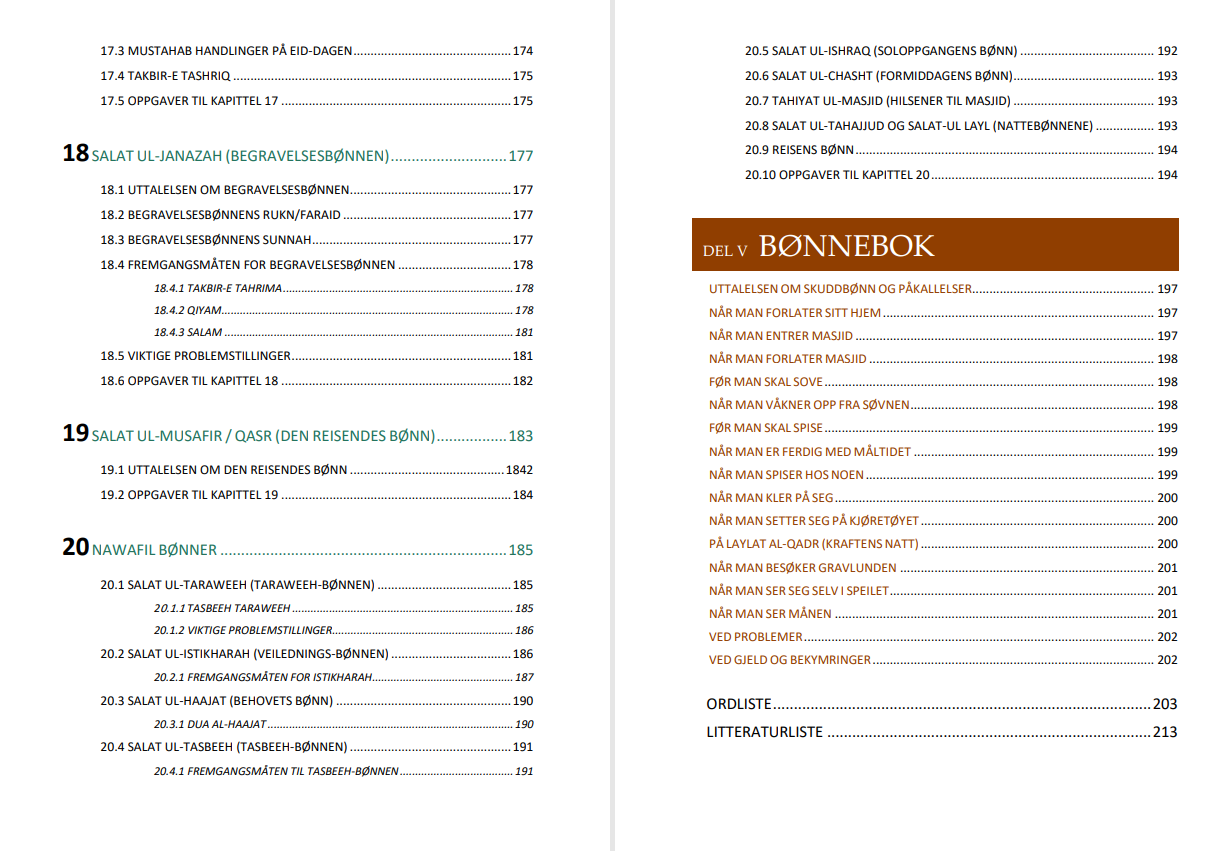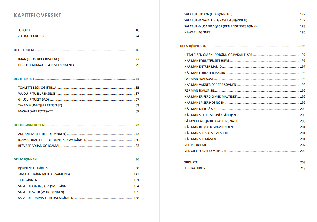 En detaljert instruks i den islamske troen, renselsen, bønneropene og bønnen. Med illustrasjoner.